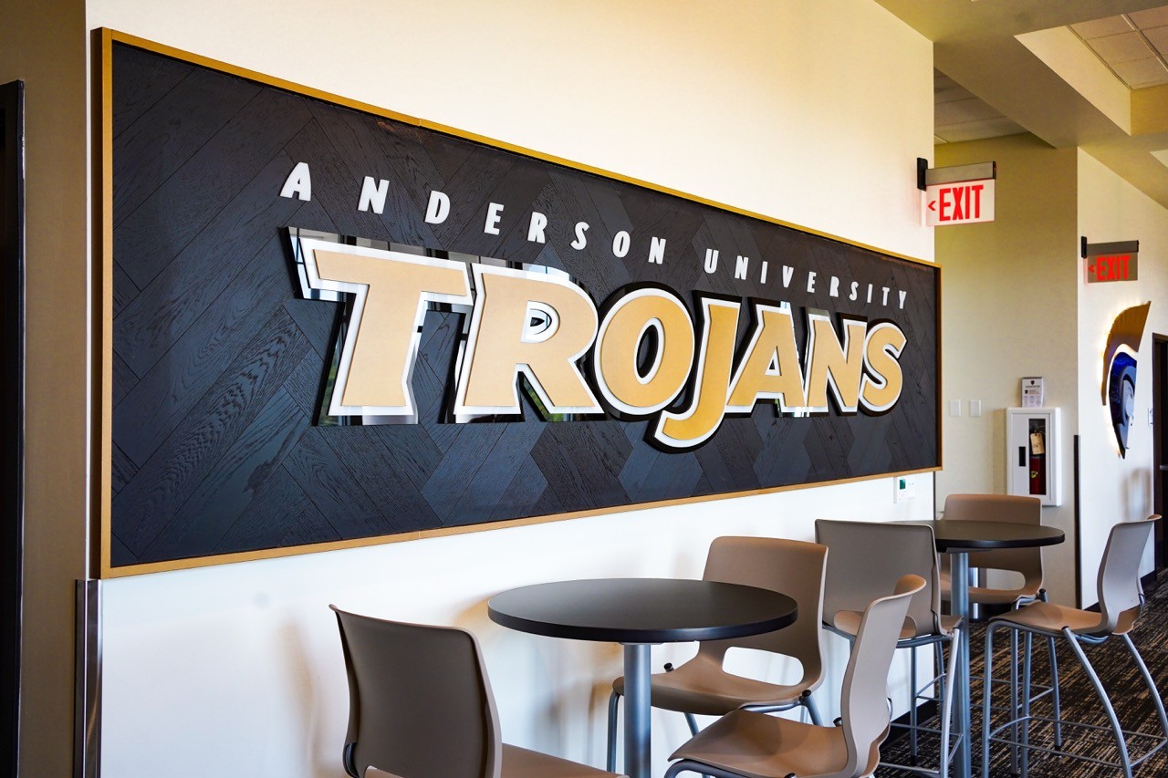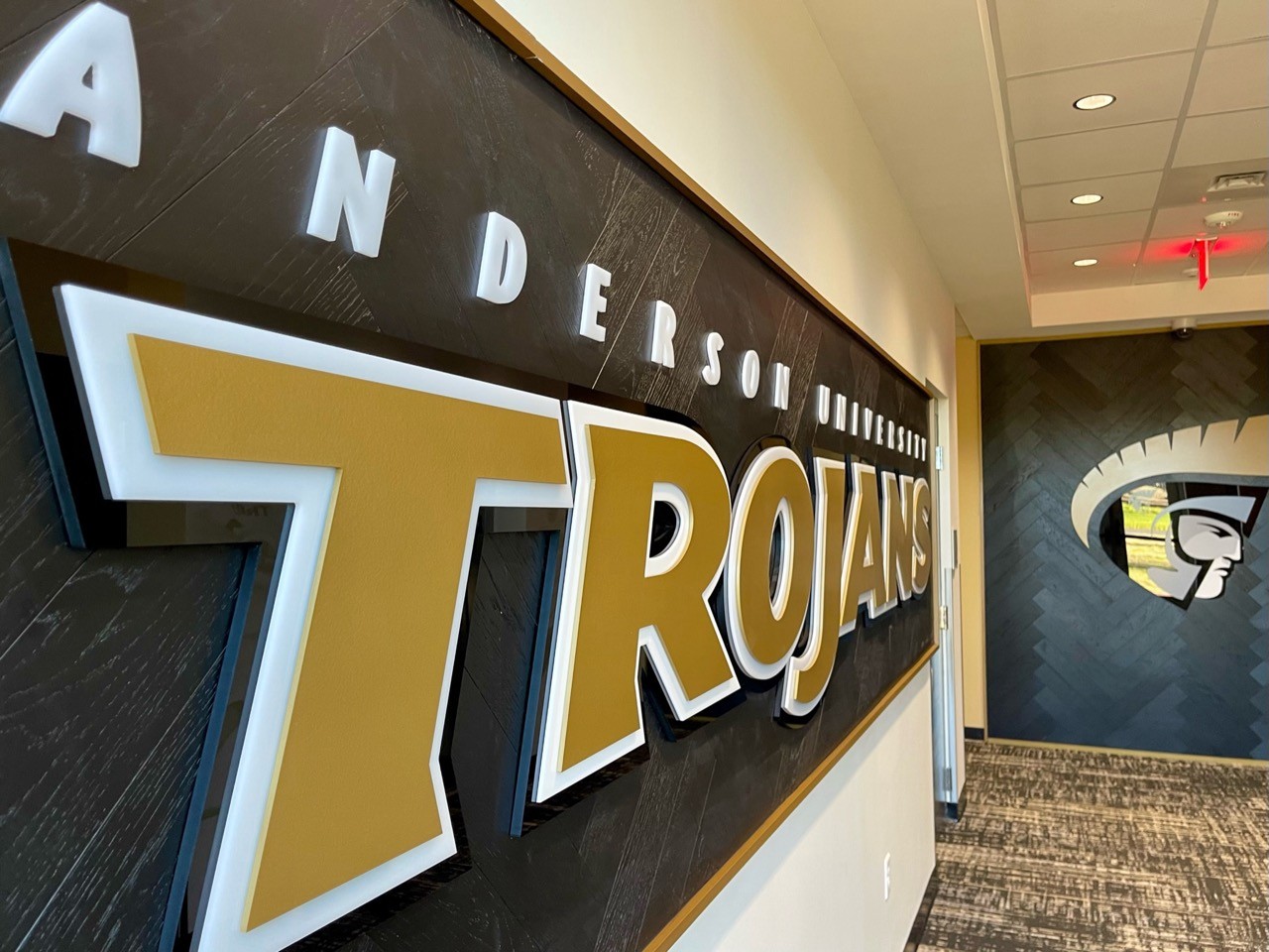 Anderson University wanted their athletic facilities to feel as serious as their athletes. SMASH stepped in to create custom signage, branded graphics, and bold visual moments across key areas like locker rooms, VIP spaces, and main entrances. The result is a space that motivates athletes, impresses recruits, and puts Trojan pride front and center.